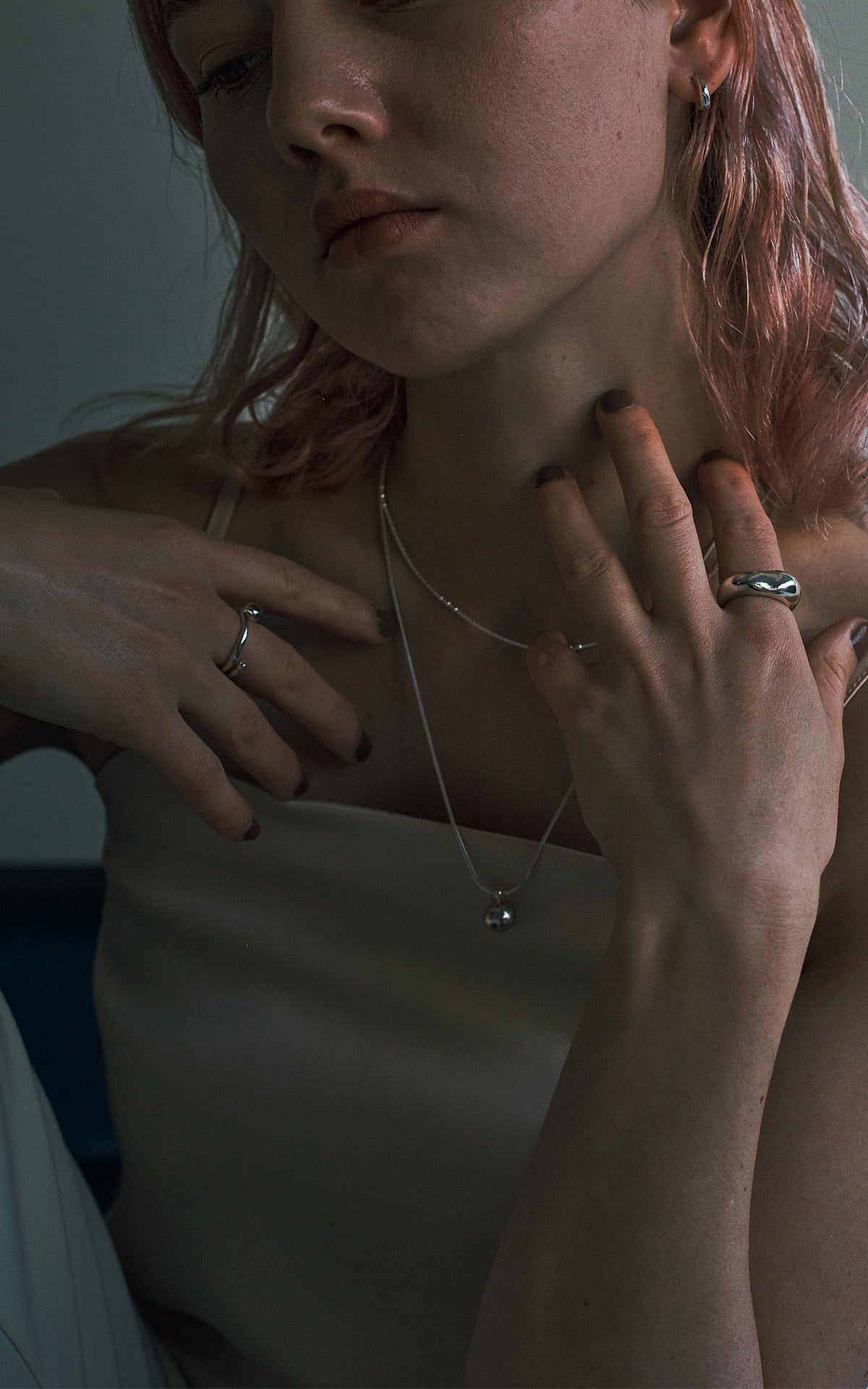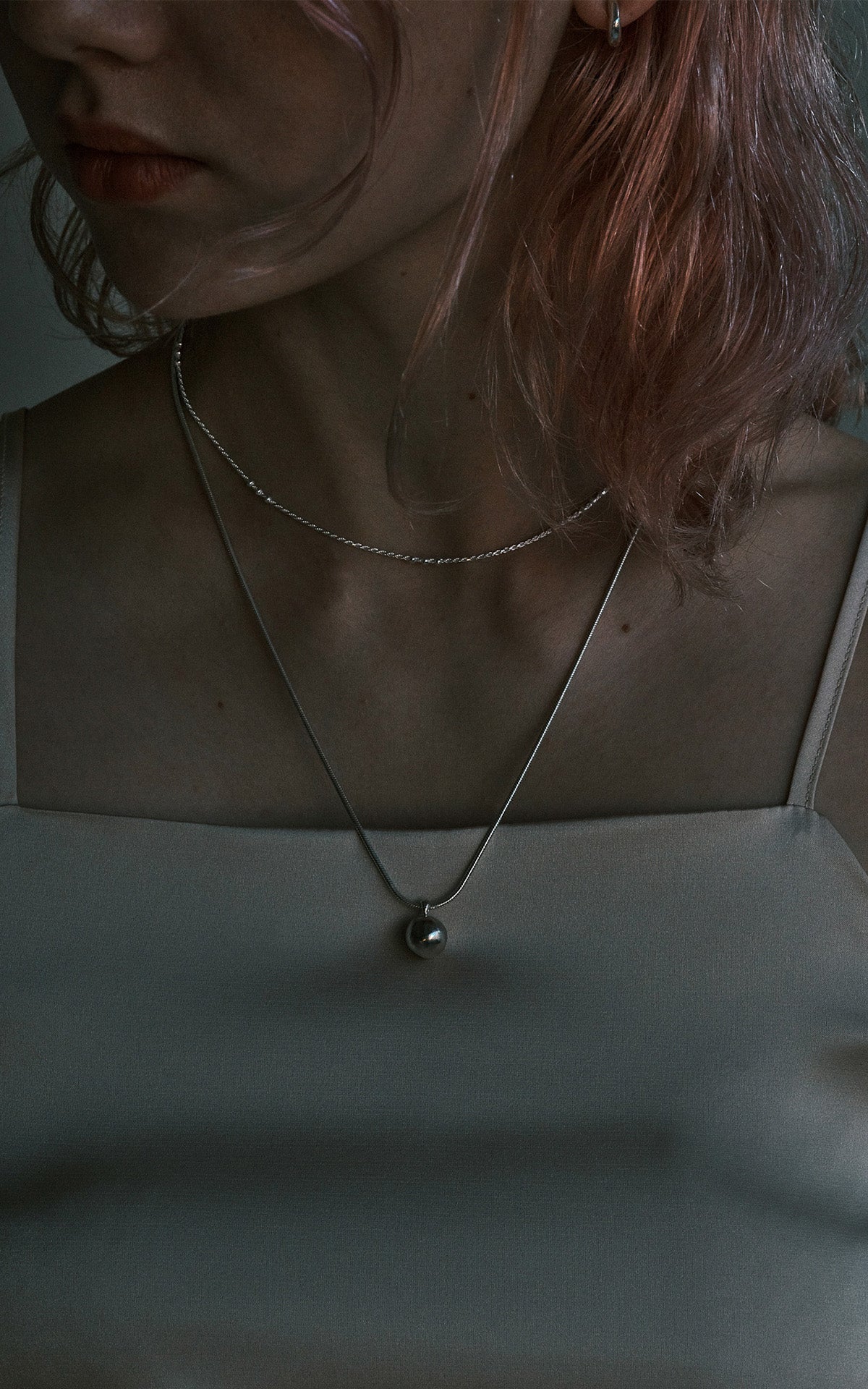 苦しさを感じさせない45cmの長さで、1点付けはもちろん長めのネックレスとの重ね付けも楽しめます。