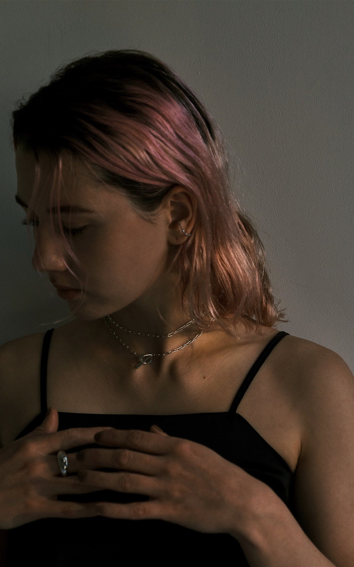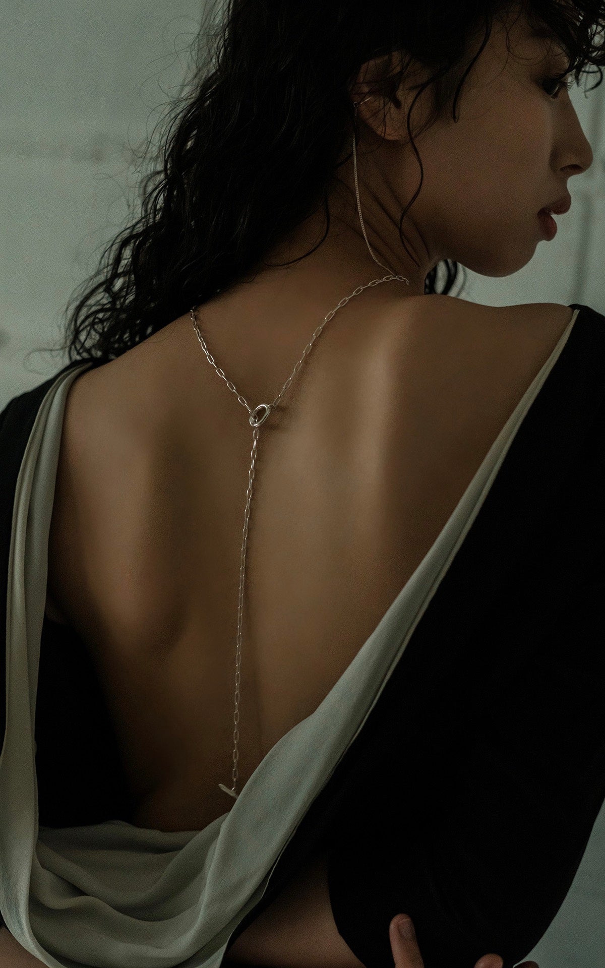 前に垂らしたり、後ろに垂らしたり、2重にしてチョーカー風にしたり、普通のロングネックレスにしたりと、色々な使い方を楽しめるネックレス。